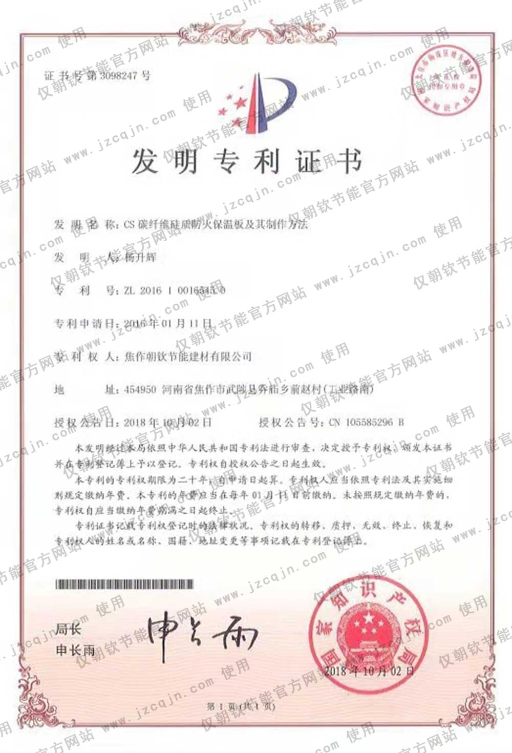 專利|CS碳纖維硅質(zhì)防火保溫板及其制作方法